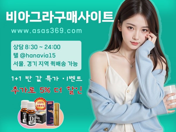 보다 자세한 정보와 상담이 필요하시다면 비아그라 구매 사이트(https://www.asas369.com)를 방문해 주세요. 안전한 실데나필 구입 방법부터 올바른 실데나필 복용법까지, 모든 문의는 고객센터(텔레그램: @hanavia15)로 연락 주시면 오전 8시 30분부터 자정까지 상담이 가능합니다. 비아그라 구매 사이트는 고객 여러분의 건강하고 안전한 생활을 위해 항상 노력하겠습니다.